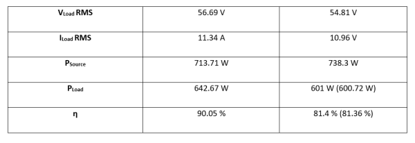 To mimic the source, the pulse function is used. This will give a bipolar square wave with a frequency of 20 kHz. When the simulation was originally run, there was a slight difference between the simulated results and the reported results. This is because LTspice does not automatically takes ESR, copper losses, etc into account. Below figure and tablev how the simulated results rounded to two decimals. The rounded off values are not used in calculations.