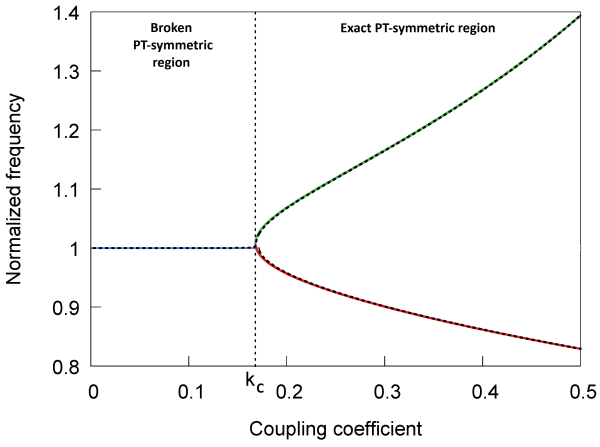In other words, we can only achieve a PT-symmetrical system is the coupling factor $k$ is higher than $k_c$.
