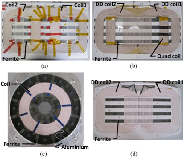 Double-D Quadrature (DDQ) coils are based on the DD concept but a second set of coils at 90° is added. This enhances tolerance in both axes. This results in a very uniform magnetic field over a larger area and higher efficiency under misalignment. These are mainly used in high-performance or research-based systems but at the cost of increased complexity, weight and expense. Bipolar coils are typically figure-8 shaped and produce concentrated flux between two poles. They are highly efficient when aligned and provide strong coupling across gaps. However, their performance drops sharply with perpendicular misalignment. They also tend to be heavier and more complex due to required ferrite cores.